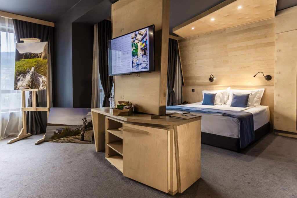 на помещение, за 2-ма или 4-ма възрастни, в зависимост от избрания тип настаняване и включва: