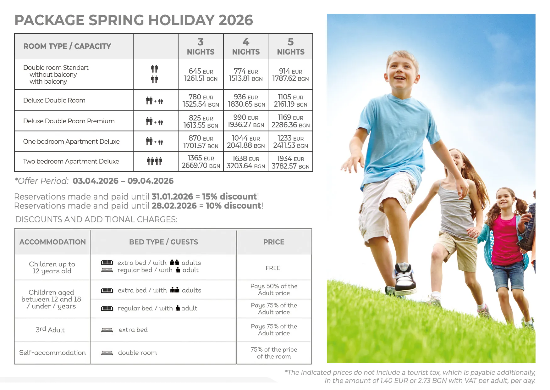 To make the students' and parents' weekends really special, we have prepared an exclusive package. Our offer is valid for the period 03.04.2026 - 09.04.2026 and gives you the flexibility to choose a stay of 3, 4 or 5 nights.