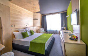 Обща информация: Стилна и уютна двойната стандартна стая е идеалното място, където да се потопите в пълно спокойствие и жадувана релаксация. Стаята може да се използва с едно двойно легло или две разделени, единични легла.