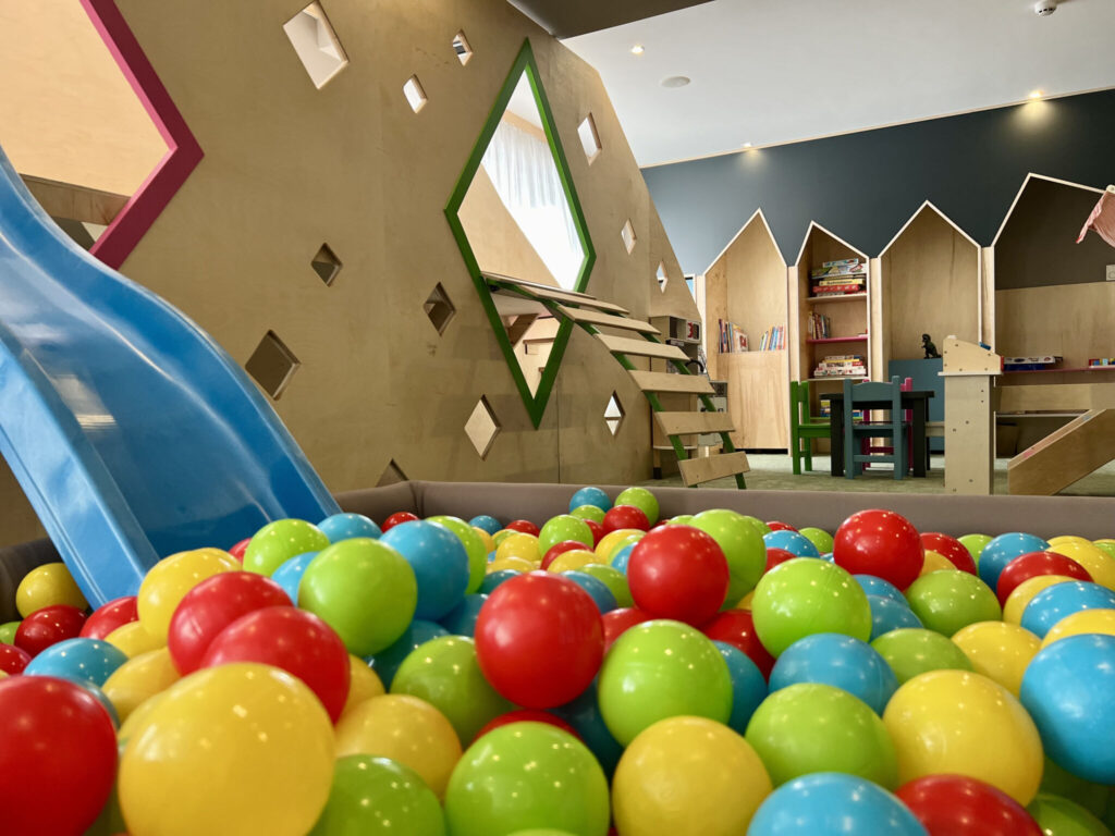Намира се непосредствено до рецепцията и ресторанта на хотела, което дава възможност на родителите да се насладят на спокойна вечеря или елегантна напитка, докато любимите им деца се забавляват.